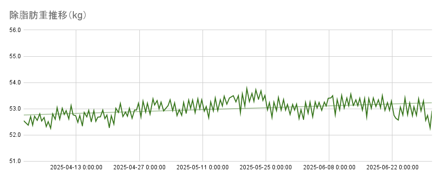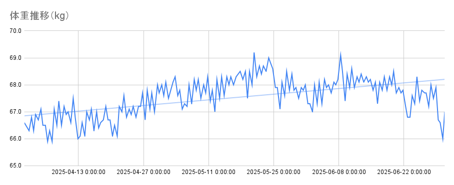 一方で6月の減量に関しては、体調不良(風邪)による影響が大きいものと見ています。 もう少し緩やかに落とす予定でした。